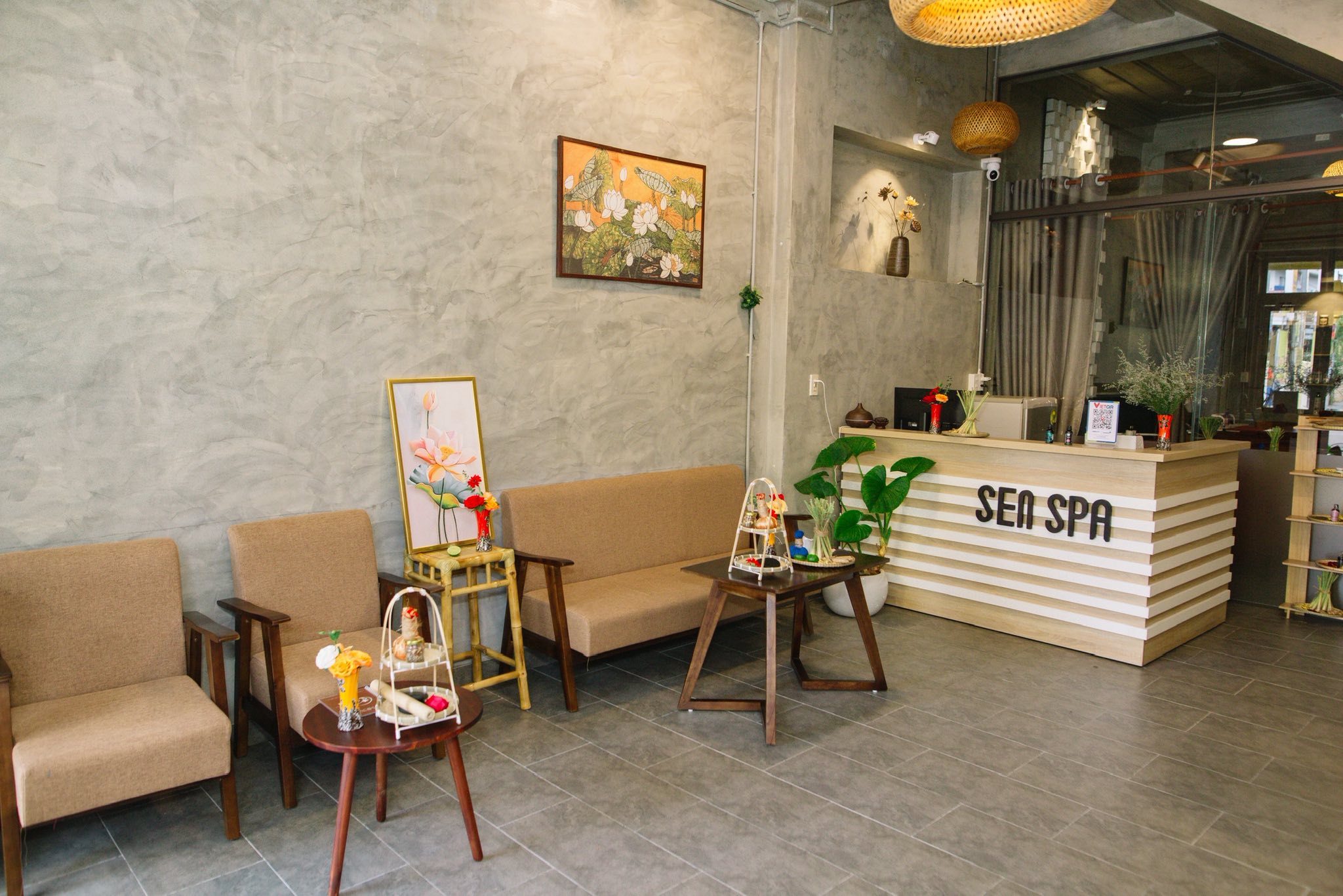 Sen Spa được thiết kế khá xinh xắn, mộc mạc với gam màu chủ đạo là vàng & nâu, tạo cảm giác nhẹ nhàng, thư thái. Mỗi góc nhỏ của spa đều toát lên sự gần gũi và thoải mái, kết hợp cùng âm nhạc du dương, tiếng nước chảy róc rách sẽ giúp quý khách hàng xua tan đi mọi căng thẳng, mệt mỏi.