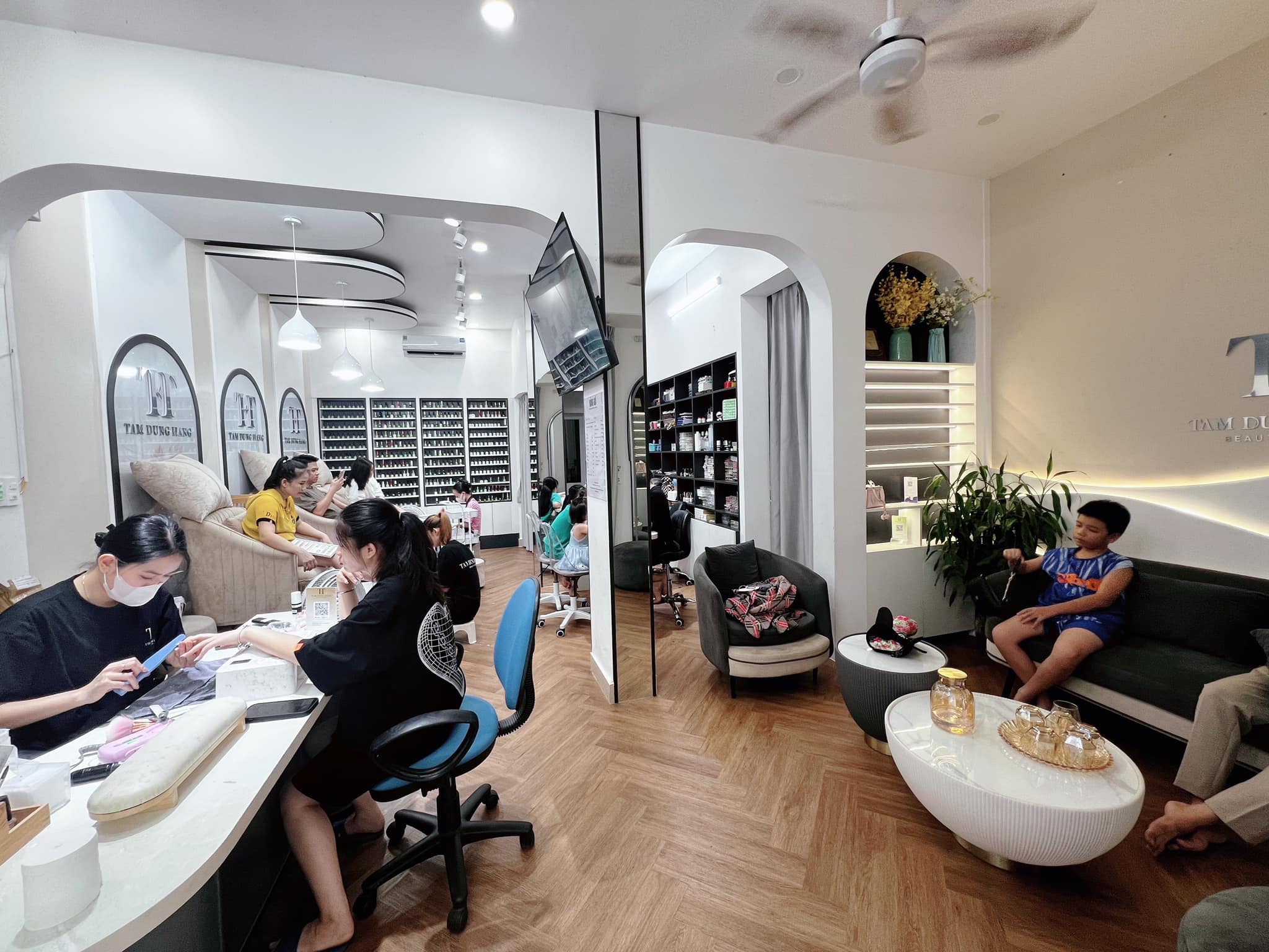 Tâm Dung Hằng Nails Spa sở hữu không gian rất khang trang với 3 tầng rộng rãi và thoáng mát. Các khu vực làm móng và spa được phân khu rõ ràng. Không khí bên trong lúc nào cũng rôm rả, đông khách nhưng không gây cảm giác chật chội, nhờ cách sắp xếp hợp lý. Spa được trang bị đầy đủ máy móc hiện đại như máy hấp, máy ánh sáng sinh học, máy điện di tinh chất và các thiết bị hỗ trợ chăm sóc da công nghệ cao. Dụng cụ làm móng được khử khuẩn thường xuyên, đem đến sự yên tâm cho khách hàng trong suốt quá trình làm đẹp.