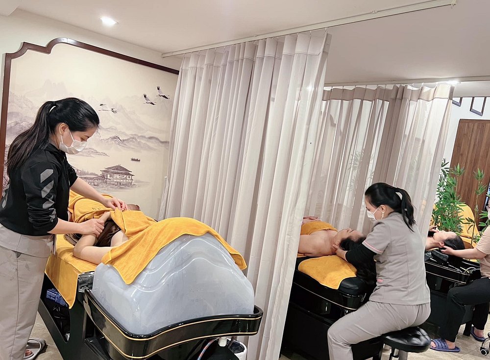 Đội ngũ kỹ thuật viên tại đây không chỉ có tay nghề cao mà còn rất tận tâm. Với sự kết hợp giữa phương pháp massage truyền thống và kỹ thuật hiện đại, mỗi động tác đều được thực hiện chính xác, giúp giải tỏa căng thẳng, giảm đau nhức và cải thiện tuần hoàn máu. Liệu trình bắt đầu bằng bước xông hơi nhẹ nhàng, sau đó là massage chuyên sâu với dầu thảo dược chất lượng cao, đảm bảo an toàn và mang lại hiệu quả tối ưu. Dịch vụ tại đây đa dạng, từ massage body, massage đá nóng, bấm huyệt đến các liệu trình trị liệu chuyên sâu, phù hợp với nhiều nhu cầu khác nhau.
