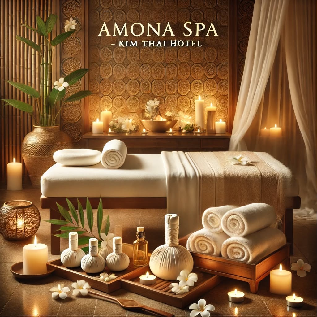 Amona Spa tại Kim Thái Hotel mang đến trải nghiệm thư giãn đẳng cấp với các phương pháp trị liệu đa dạng từ tiêu chuẩn đến trị liệu chuyên sâu.