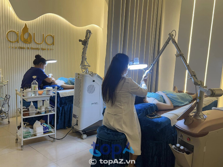 Dịch vụ nổi bật tại Thẩm mỹ viện Aqua là chăm sóc và điều trị da. Cơ sở này ứng dụng công nghệ cao kết hợp với sử dụng sản phẩm chăm sóc, đặc trị da để có thể cải thiện các khuyết điểm và giúp làn da trở nên căng bóng, mịn màng.