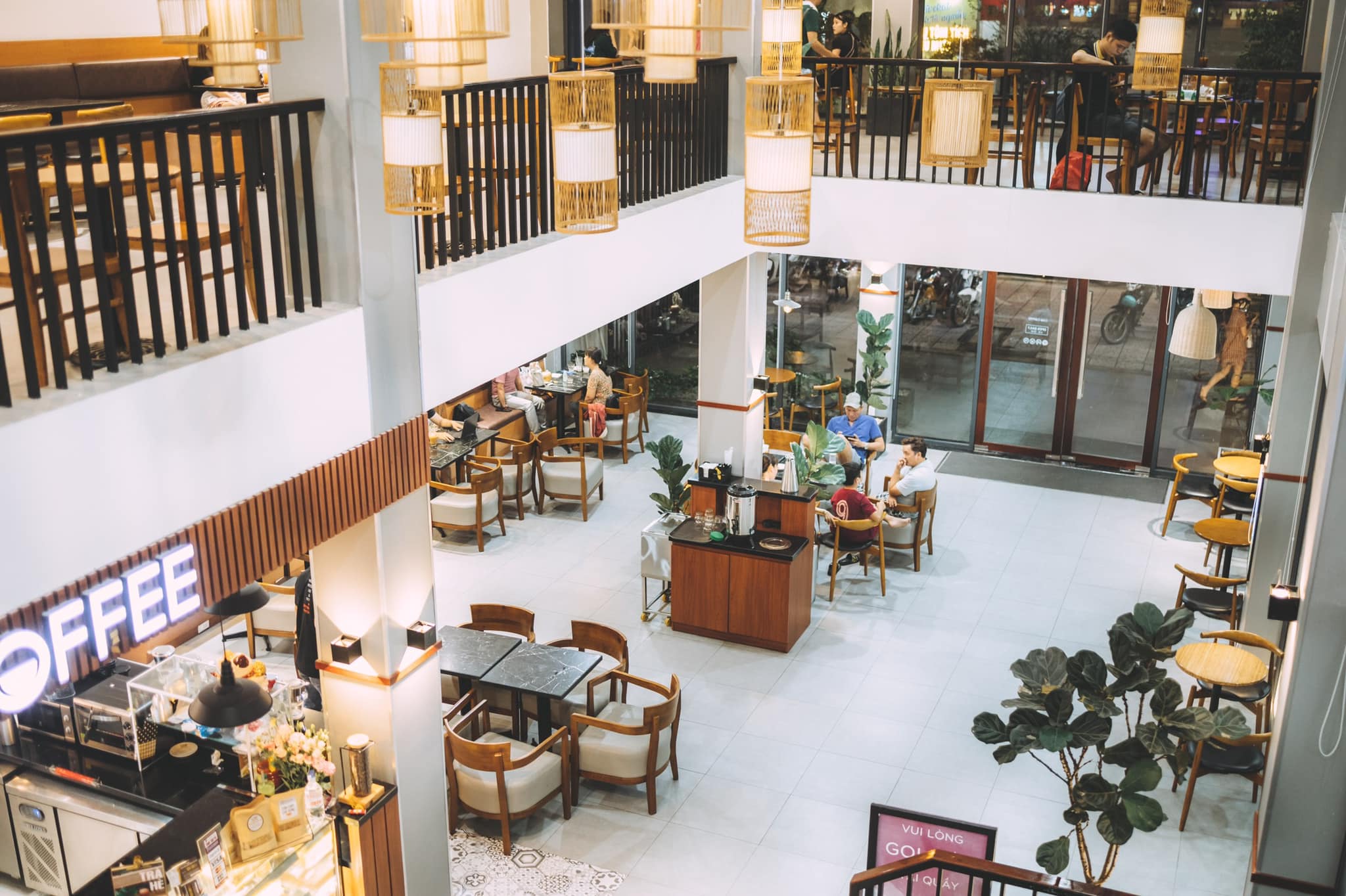 CAO Coffee đặc biệt có phần cửa kính trong để tôn lên ưu điểm của quán. Đó là tạo ra không gian cao ráo, tách biệt để bất kỳ ai đến đây đều có thể phơi mình dưới ánh nắng ban mai (nếu đi vào sáng sớm) hay ngắm nhìn ánh mặt trời khi hoàng hôn buồng xuống (nếu ghé quán và buổi chiều).