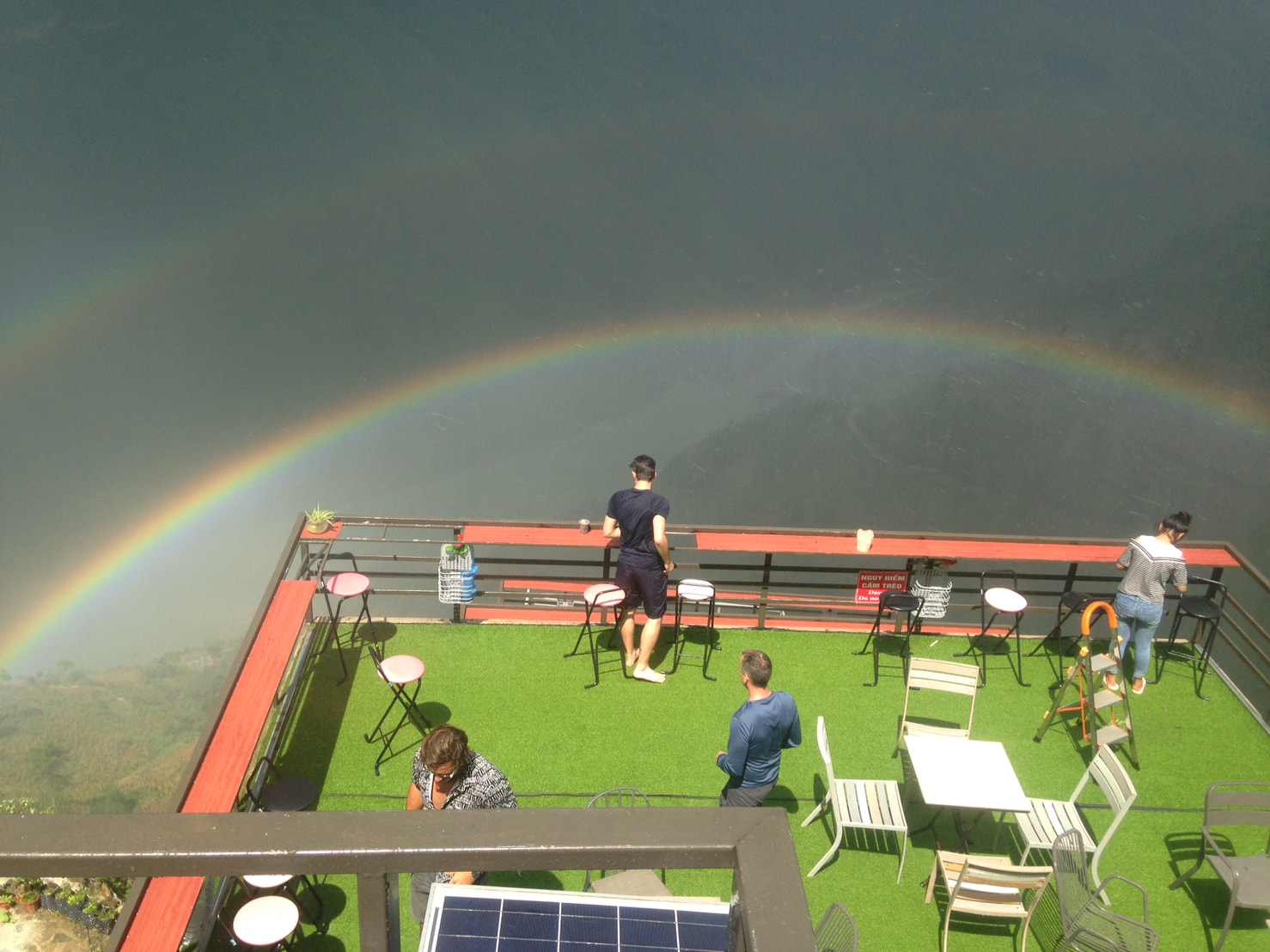 Không gian rộng rãi ở đây tạo điều kiện cho bạn tha hồ lựa chọn những vị trí đẹp tuyệt bên trong nhà hay ngoài trời, phù hợp để thưởng thức đồ uống, ngắm cảnh và check in không góc chết. Thiết kế thiên về những dãy bàn dài kèm theo ghế cao cùng phong cách cổ điển hiện đại đan xen để du khách dễ dàng hướng mắt ngắm nhìn tuyệt tác ở phía trước hay xung quanh được thuận lợi. Panorama cực kỳ phù hợp với những bạn trẻ yêu thích sống ảo, thích chụp ảnh cùng với cảnh quan xinh tươi, chủ quán còn đặc biệt thiết kế thêm một góc nhìn có cờ đỏ sao vàng, đây là một background xịn sò tạo nên bức ảnh nghìn like trên mạng xã hội.