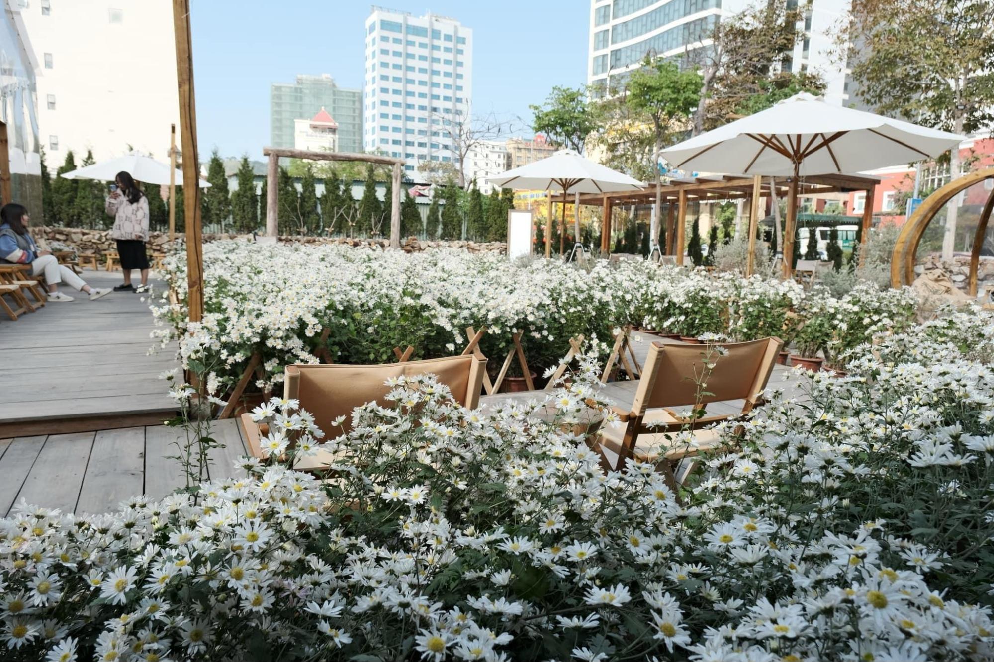 Điều khiến Vintage 198X để lại dấu ấn trong lòng mọi người có lẽ là vườn hoa nhỏ gồm cẩm tú cầu hay dàn cúc họa mi. Vì vậy, nơi đây được xem như một signature của quán khi hàng loạt khách ghé thăm phải “tranh nhau slot” để được chụp hình cùng dàn hoa đầy diễm sắc.