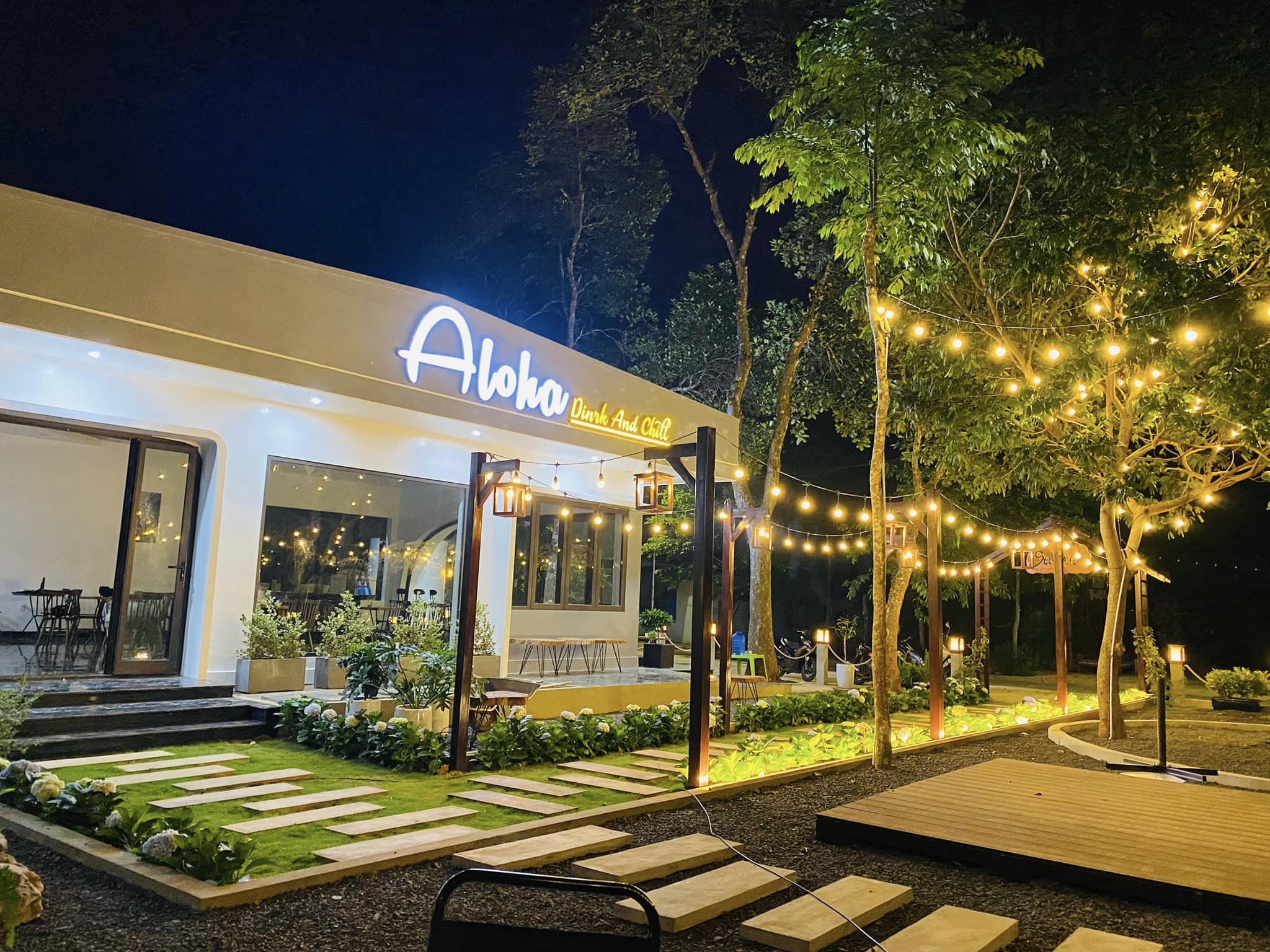 Aloha Coffee hiện lên với vẻ đẹp tinh khôi cùng sắc trắng nền nã. Không gian quán đầy ắp các loài hoa đủ màu sắc sặc sỡ. Những khóm hoa cẩm tú cầu tím biếc nở rộ bên hồ nước trong xanh trở thành điểm check-in yêu thích của nhiều bạn trẻ. Cảm giác ấm cúng len lỏi vào từng ngóc ngách, nơi những bóng đèn vàng nhè nhẹ chiếu, đưa bạn vào cảm giác thư thái, dễ chịu khi ghé quán nghỉ chân.