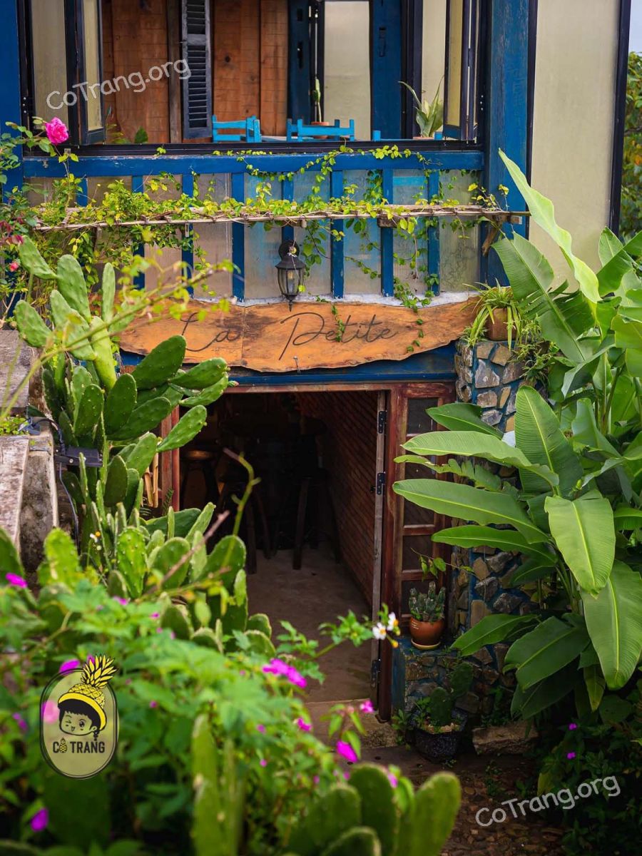 Không gian quán khá nhỏ, khuôn viên gồm hai tầng và một khoảng sân bé xinh, xung quanh quán trồng rất nhiều cây xanh, hoa cỏ mang lại cho thực khách cảm giác thư thái, dễ chịu. Ấn tượng đầu tiên khi đến La Petite là một ngôi nhà gỗ sơn màu xanh dương mát mắt, nổi bật giữa đất trời Măng Đen hùng vĩ.